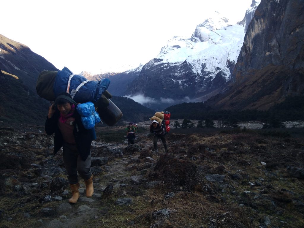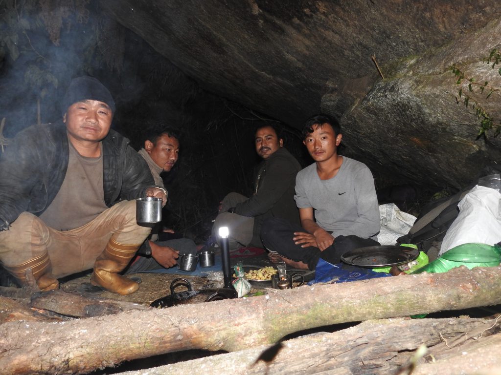Working in the Barun Valley is as much about endurance as it is about science. Just getting there is a journey in itself. From Kathmandu, it takes either a 15-hour drive to Khadbari or a short flight to Tumlingtar, followed by a punishing 7–8 hour off-road jeep ride and then several days of trekking through rugged wilderness. Beyond Syaksila village, there are no tea houses or permanent shelters until you rejoin the Makalu Basecamp route at Jate. We relied entirely on tents or, when the weather turned, tucked ourselves under dripping cliffs and rock overhangs. The trails are narrow and steep, often clinging to the side of the valley wall, and there is no phone signal or radio network. Every step had to be deliberate, one misstep on the wet rocks could have meant serious injury, far from help.